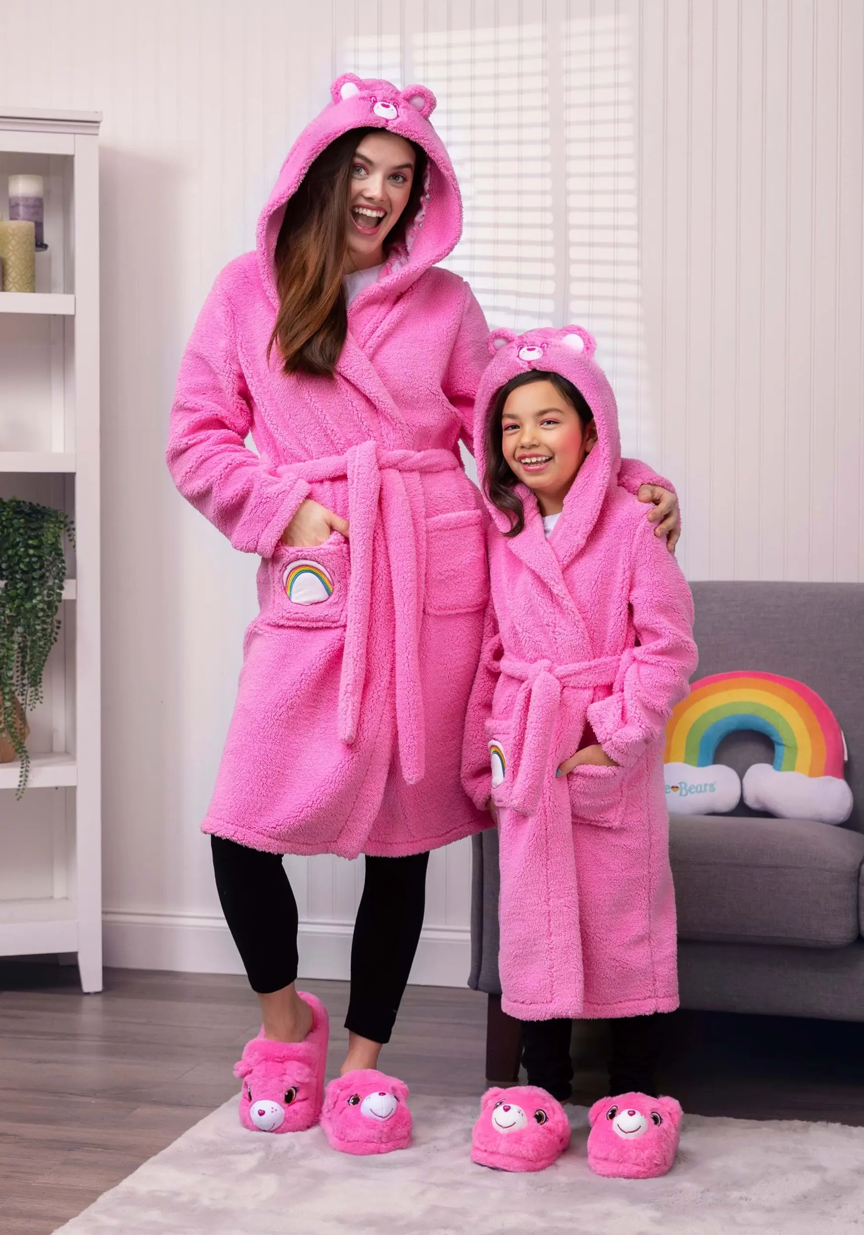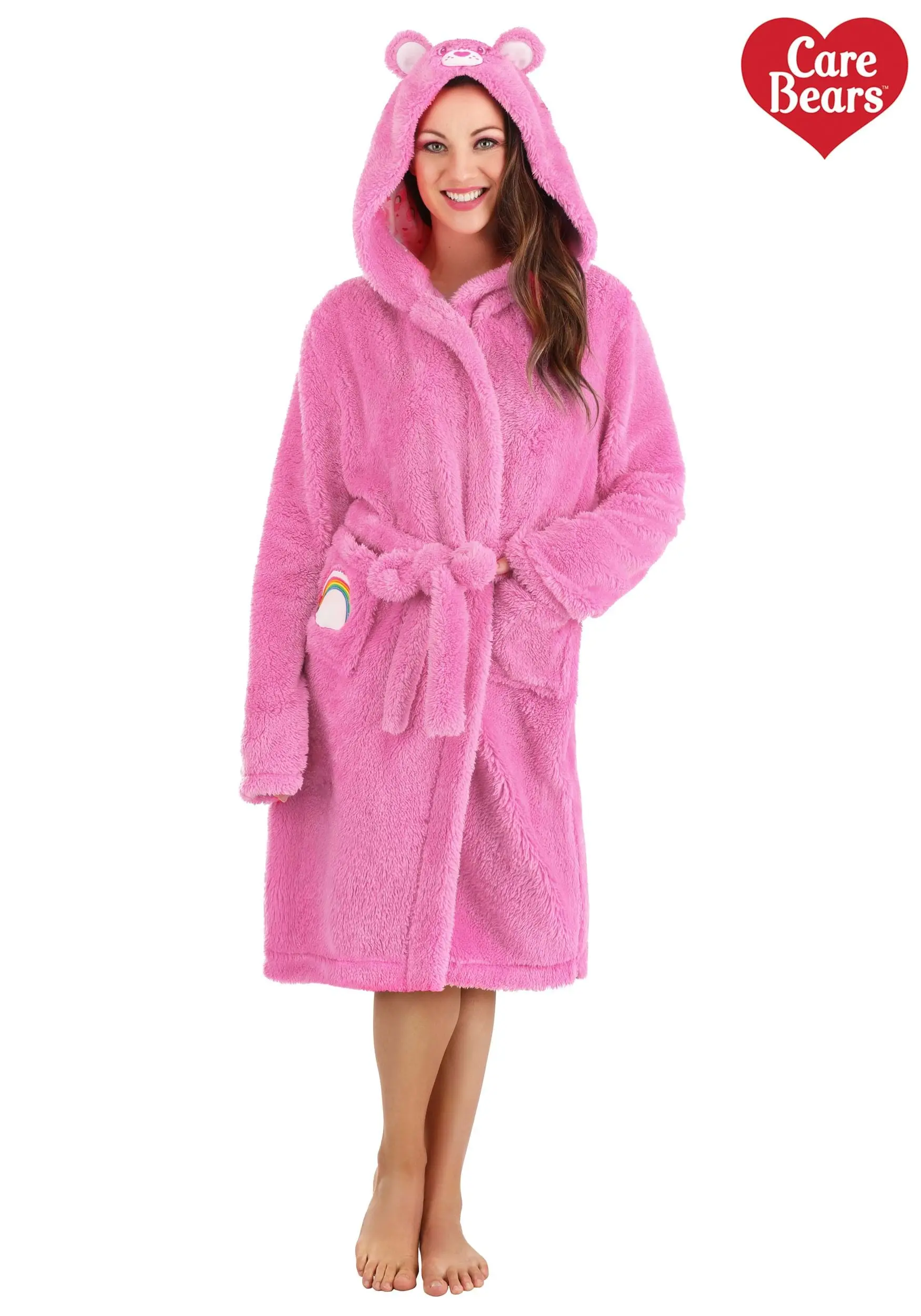 This is an Adult Care Bears Cheer Bear Hooded Robe.