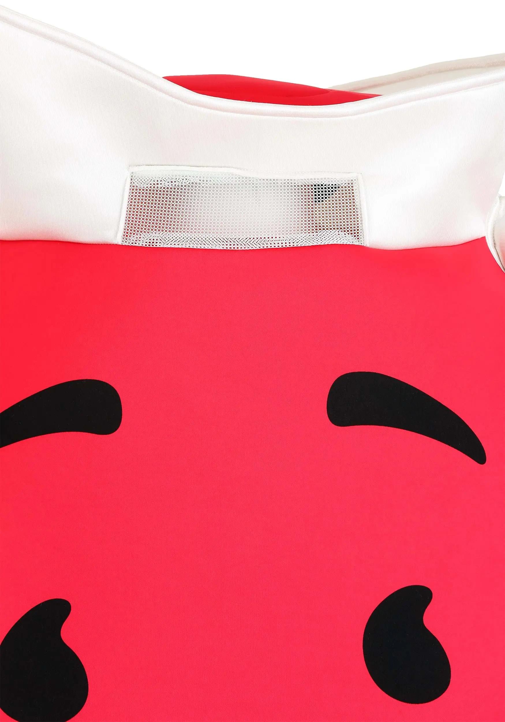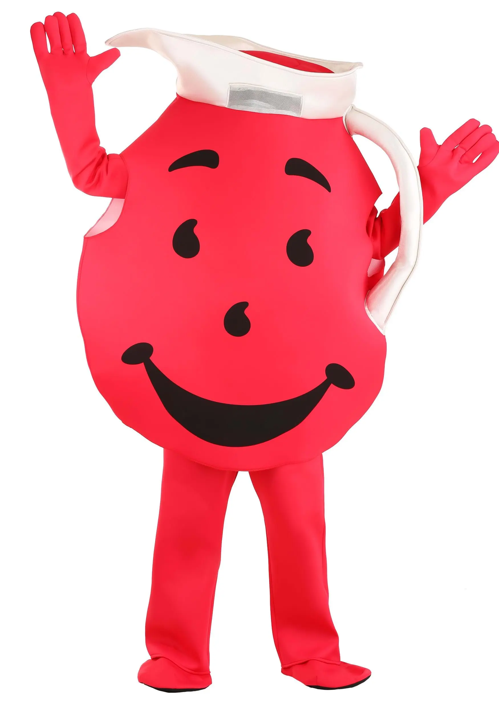 This costume turns you into one giant pitcher of Kool-Aid! You’ll be wearing red leggings and boot covers to turn any shoes into Kool-Aid colored ones! Not only that, we have also included gloves, to make sure that no sign of human skin is showing. but let’s not forget the most important part, the tunic! The tunic will transform your entire torso into a giant pitcher of Kool-Aid with a face on the front! You will be able to see through a section of mesh towards the top of the pitcher.