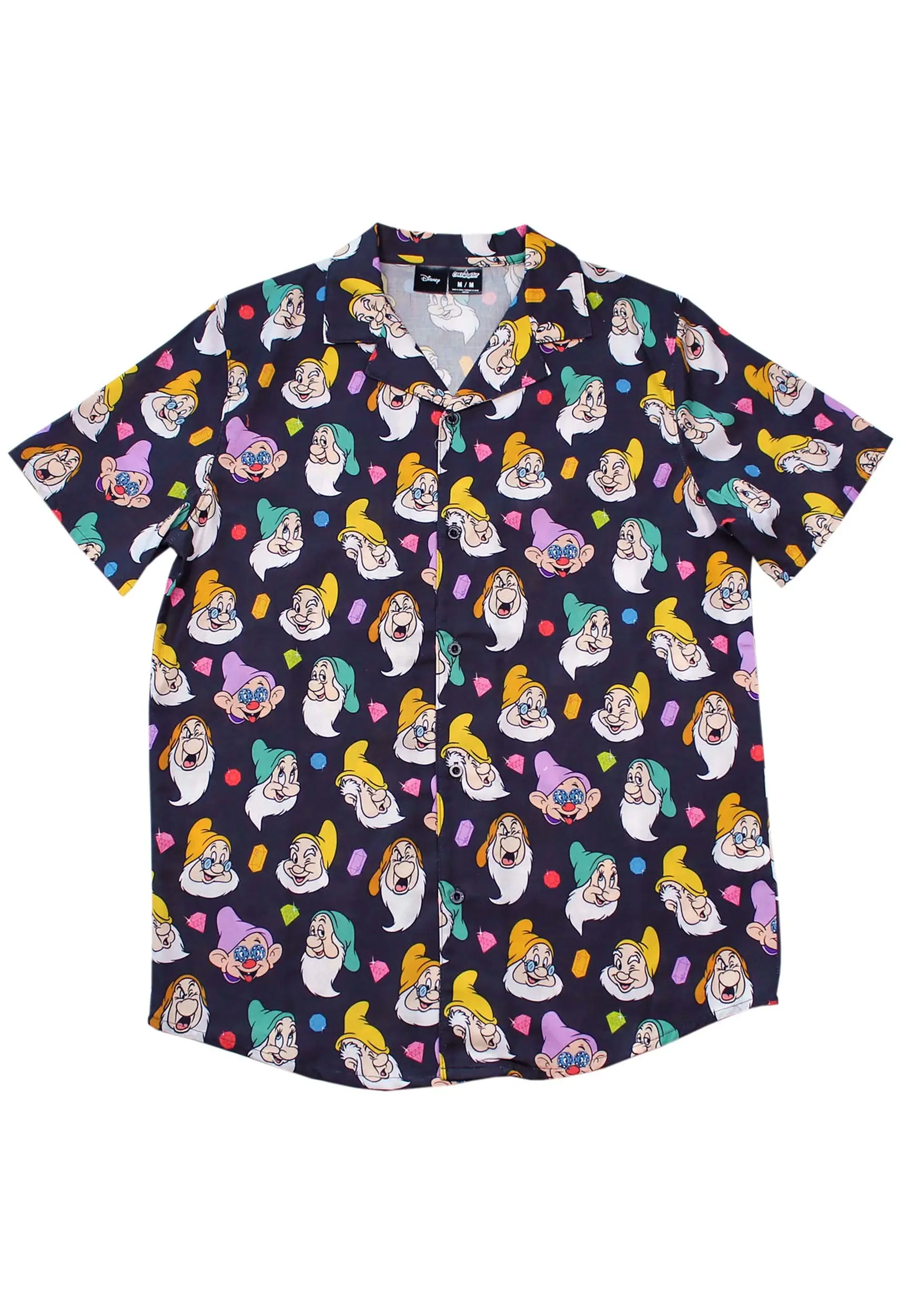 This is an Adult Cakeworthy Snow White 7 Dwarves Button Up Shirt.