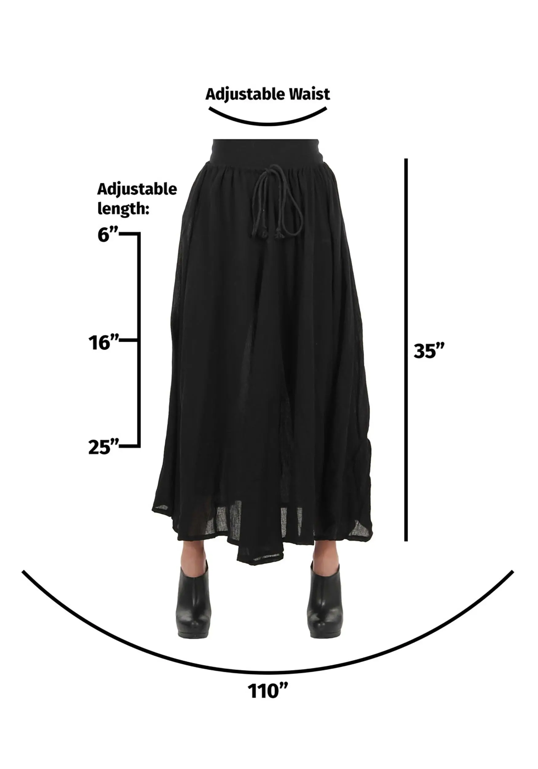- Interior ribbon ties to transform from a straight skirt to a fuller flounced look