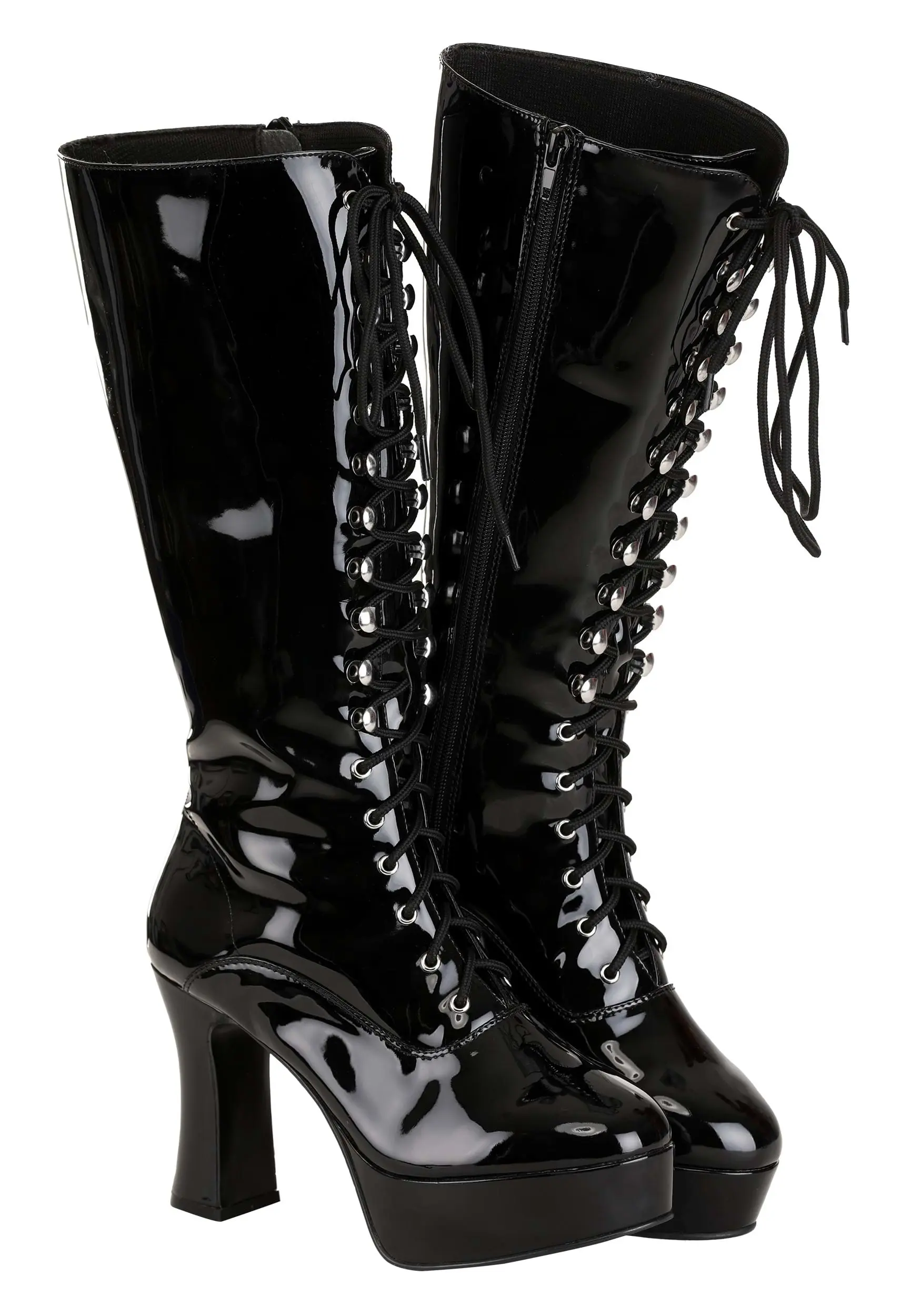 - Shiny faux leather boots