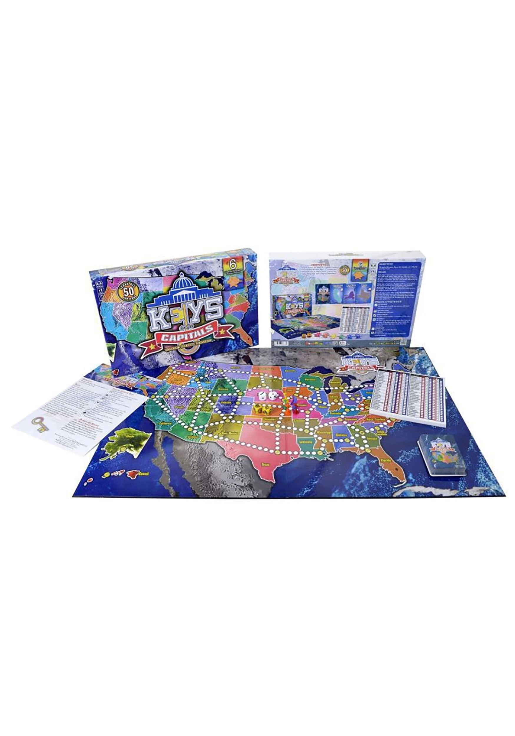 Team up 2-6 players of ages 4 and up for a fun game that can play in 45-60 minutes to fly around the states and be the first to complete the trek. In this game, players begin in their home state and roll dice to determine where their planes can fly. Special effects can occur to help them explore more areas or have a better chance of answering questions and acquiring the keys to the capital.
