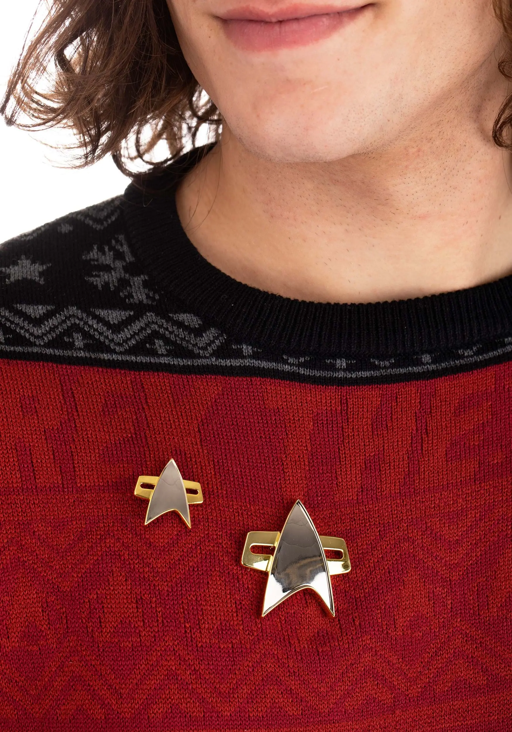 - Polished metal badge is a replica of the ones from Star Trek: Voyager