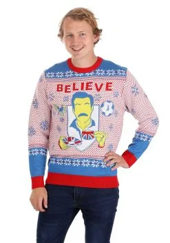 This is an Adult Ted Lasso Believe Ugly Christmas Sweater.