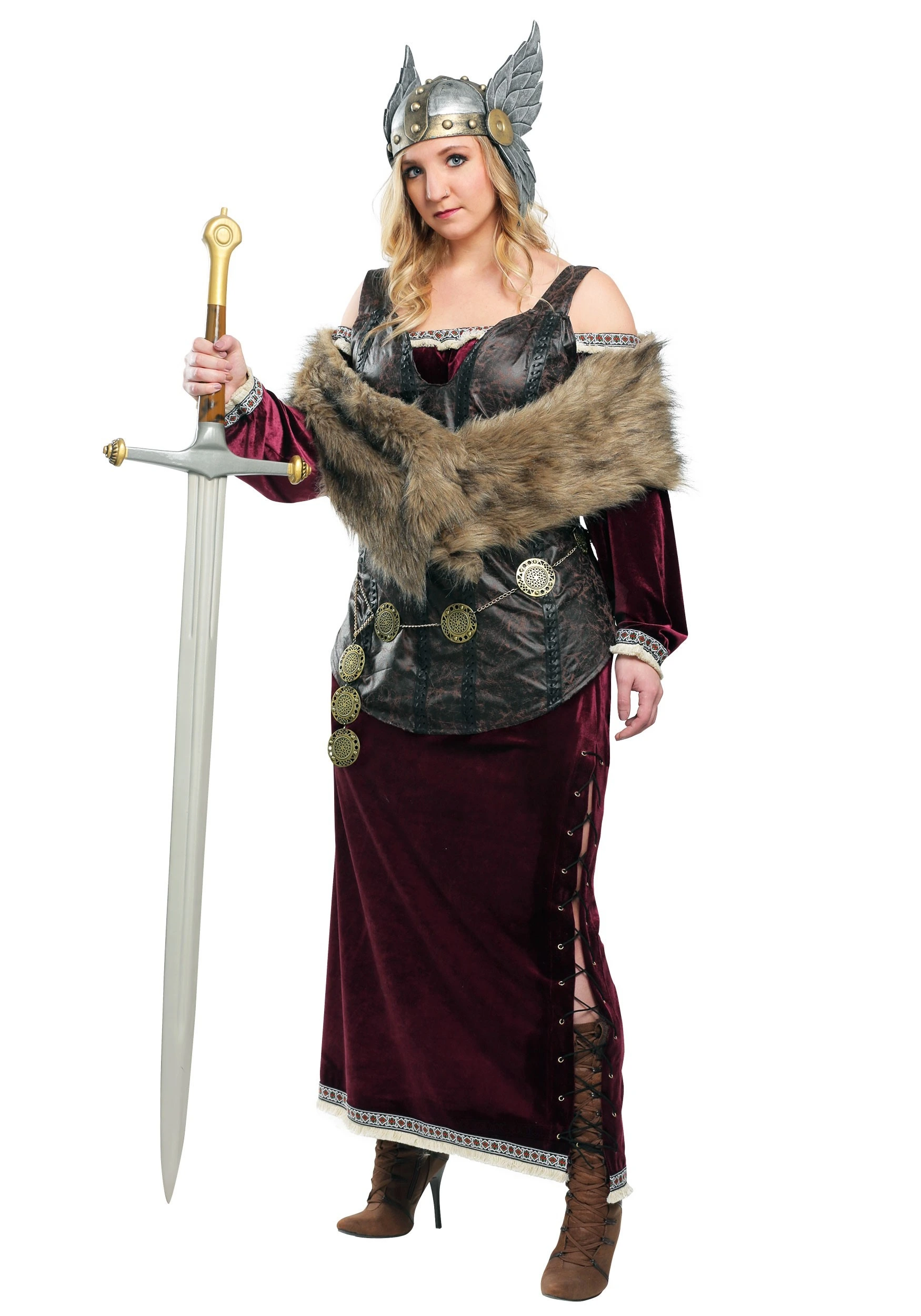 This is an exclusive Plus Size Women’s Viking Goddess Costume.